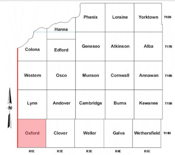 Soon thereafter, Illinois replaced the numerical names of the townships with names. 14N 01E became Oxford Township.