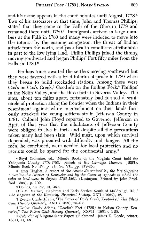 Philip Philips built a fort at Nolin Station just south of present day Loouisville Kentucky in 1780 as